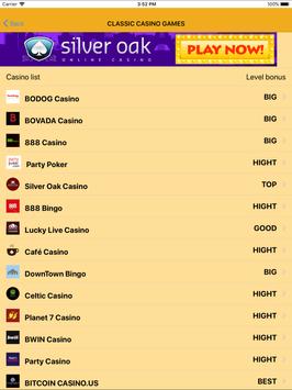 - List of best Casino: Poker, Sports Betting, Slots, Roulette, other classic games as Blackjack and Bingo.