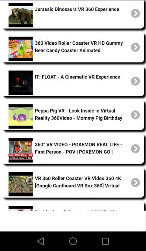 في هذا الواقع الافتراضي التطبيقات قمنا بتجميع ملفات الفيديو VR من المواضيع الأكثر موحية مثل السفينة فر رولر، أفلام الواقع الافتراضي، 360 أشرطة الفيديو وأكثر من ذلك بكثير بحيث يمكنك استخدام واستمتع خوذة الواقع الافتراضي.