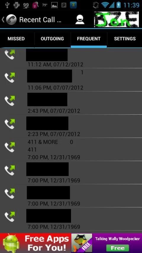 سجل المكالمات الأخيرة بسيطة لجهازك. توفر علامات التبويب لاتصالات جرت مؤخرا، والاتصالات غاب، حاولت الاتصالات، والاتصالات المتكررة.