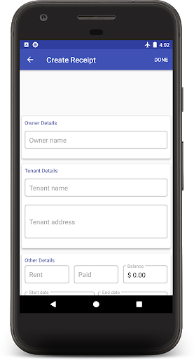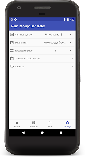 إنشاء إيصال الإيجار على الفور وحفظه في ملف PDF.يمكن لمالك المنزل تتبع جميع الاستلام الناتج وتعديله لاحقا.استخدم كامل لتقديم ضريبة HRA. لديه قوالب استلام مختلفة للاختيار من بينها