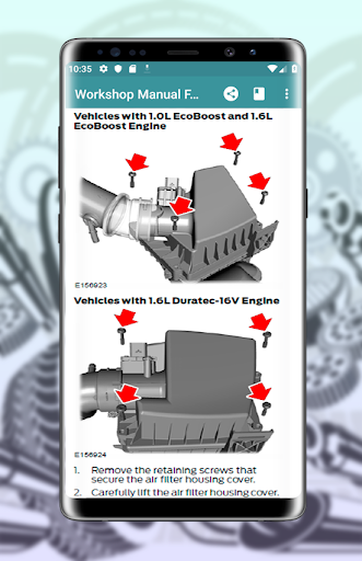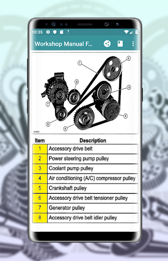 This is app where the repair manual of Ford Fiesta is described in detail. All repair operations are categorized for easy navigation. If you want to workshop manual the Ford Fiesta yourself, then this book, on repair, is perfect for drivers who want to maintain and repair their car. The app will help the masters, who have a service station for cars Ford Fiesta. Repairing Ford, replacing any parts with this app will make it easier for you, since all schemes for fiesta are described in detail and suitable for any car owner Ford. Full device model Ford Fiesta (Removing and installing engine, Crankshaft group, Cylinder head, valve gear, Lubrication, Cooling, Fuel supply system, Mixture preparation, Exhaust system, Glow plug system etc.). Your Fiesta Ford will be renovated always. The same app will help you make easy tuning for Ford.