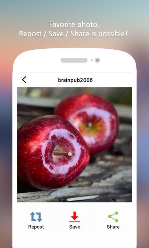 مستخدمين البحث أو عن طريق العلامات وترسل لك الصور المفضلة لديك، أيضا حفظ الصور والفيديو من خلاصتك ومن المستخدمين الآخرين لمعرض جهازك.
