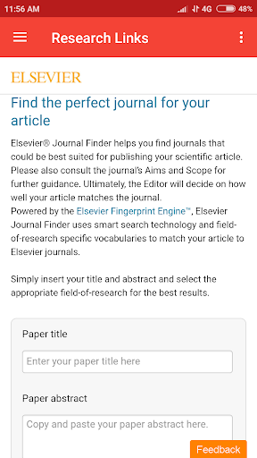 This Application also contains many popular search website, as ScienceDirect, Springer data base, ResearchGate, GoogleScholars etc..
