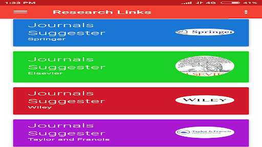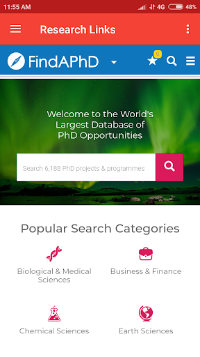 The Application in title "Research Links" would be very helpful to researchers, job seekers, students and academicians. This Application provides all the links of web for finding research positions, jobs , research database search engines, thesis report websites & Journals suggested details, books, journal