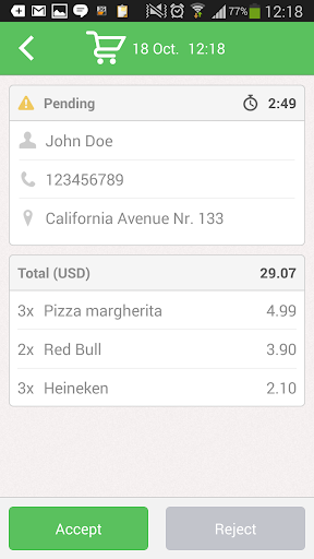 يمكنك ملء الوقت المقدر لاستلام الطلب أو التسليم ، انقر فوق قبول وابدأ الطهي.سيتلقى عميلك على الفور رسالة بريد إلكتروني مع تأكيد الطلب ، مع الوقت المقدر للاستلام أو التسليم.