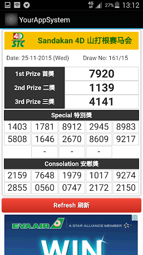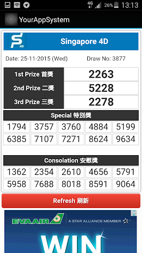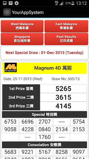 This app has the features applications for punters in Malaysia and Singapore; 1. live result immediately after each draw, 2. 4D draw result from Da Macai, 88, TOTO,STC,CASH,MAGNUM and Singapore 4D