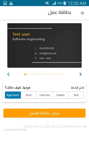- إنشاء سيرة ذاتية مهنية بطاقة عمل.