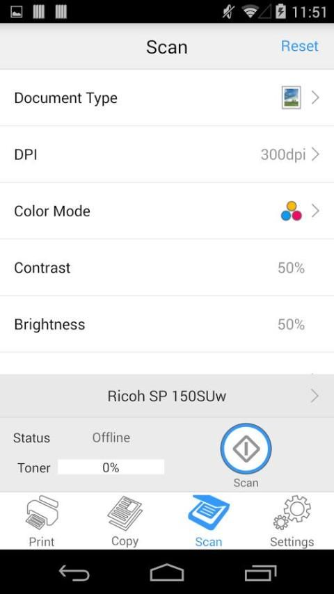 * يمكنك تحديد المعلمات مثل القرار، وحفظ الملف الممسوحة ضوئيا إلى الهاتف الذكي الخاص بك.