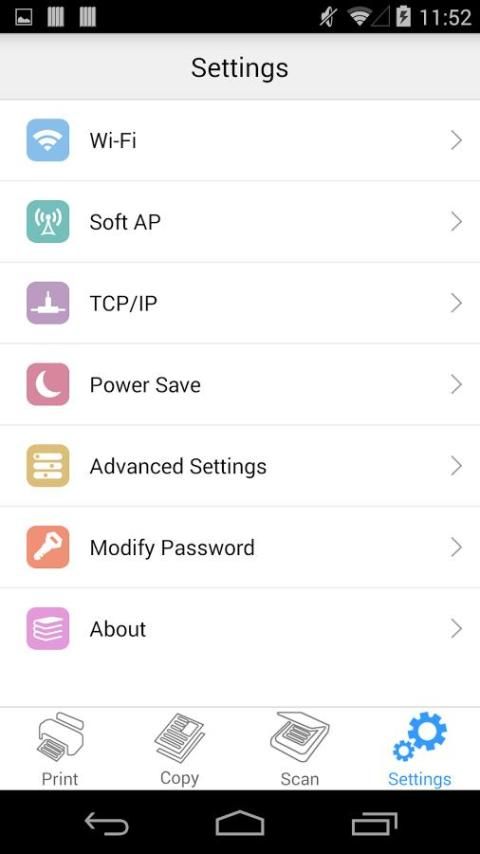 * ريكو طابعة تتيح للمستخدمين القيام الطباعة والنسخ والمسح الضوئي وتغيير الإعدادات، ويرى حالة الطابعة من الأجهزة الذكية.