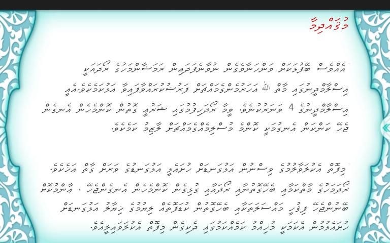 إذا وجدت أي قضايا في محتوى التطبيق أو إذا كان هناك أي مشاكل مع كيفية عرض الديفيهي والنص العربي على أجهزة الروبوت الخاص بك يرجى الاتصال بنا على apps@salaf.mv. يرجى تضمين لقطة، ووصف القضية ورقم طراز جهاز الروبوت الخاص بك.