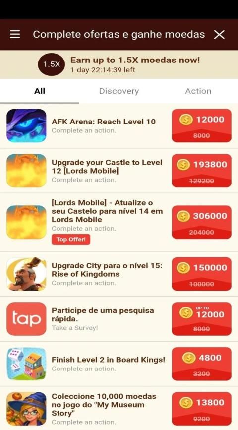 Ao conseguir as moedas necessárias, você consegue trocar por gift cards!