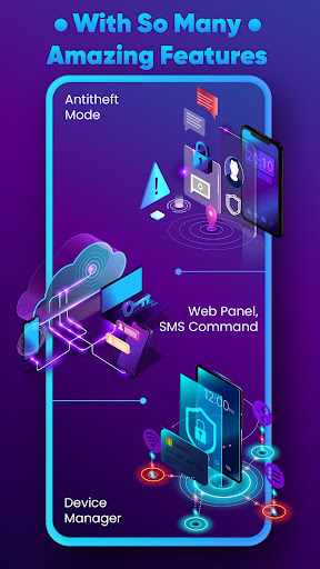→ الوصول عن بُعد إلى لوحة الويب التي تتبع الجهاز والموقع والتقاط الصور من الأمام & amp ؛الكاميرا الخلفية ، ابدأ الإنذار & amp ؛يمكن مسح البيانات ، مضاد للإدمان ، نسخ احتياطي الاتصال.