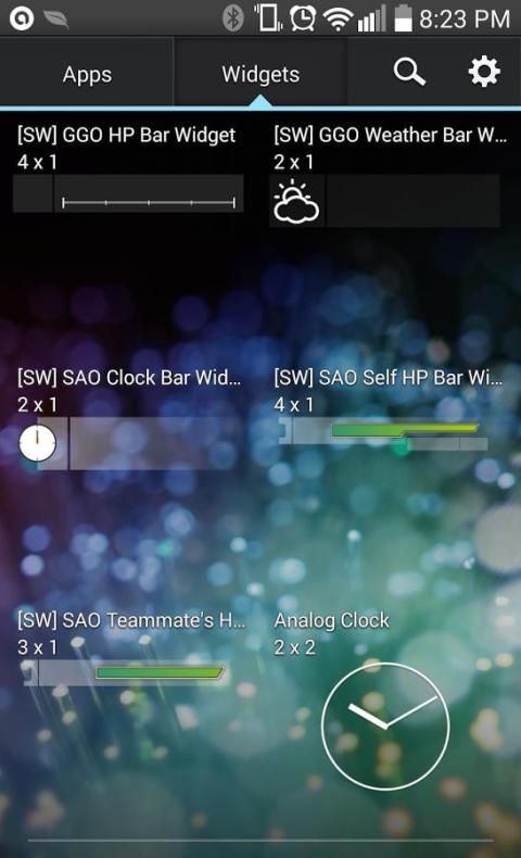 يمكنك العثور على الحاجيات SAO في قائمة القطعة وإضافتها إلى الشاشة الرئيسية.