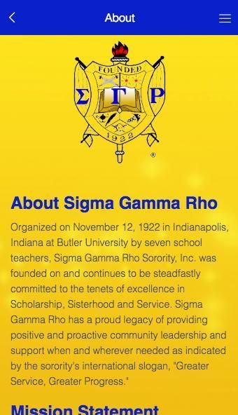 هذا التطبيق هو للأعضاء الحاليين والمستقبليين من المنطقة الجنوبية الشرقية من سيجما غاما رو منظمتنا، والغرض منه هو شركة لتقديم معلومات عن المنظمة وتسمح وسيلة من التواصل بين الأعضاء.