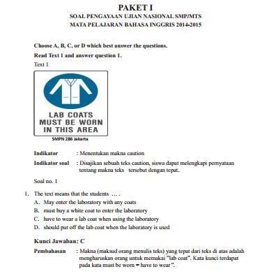Kisi-kisi UN 2016 berikut Soal Bahasa Inggris dan Pembahasan UN SMP dan Contoh Soal berikut kunci dan pembahasan