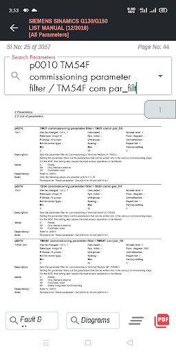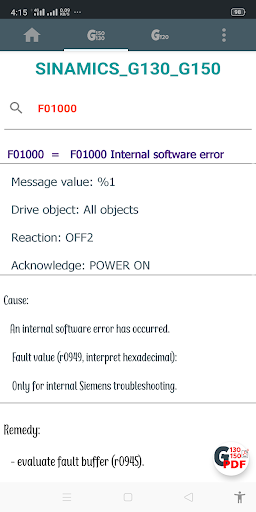 Siemens Sinamic هو تطبيق موبايل بسيط للبحث تفاصيل الخطأ والتنبيه ل Sinamics G130 / G150 و G120 و Micromaster و V90 أيضا يمكنك العثور على PDF.