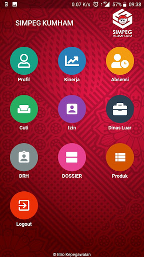 Simpeg Kumham هو نتيجة لتطوير تطبيق الويب Simpeg.يحتوي Simpeg Kumham على العديد من الميزات المتوفرة على شبكة Simpeg ، من بين أمور أخرى: الحضور والأداء والإذن والخدمة الخارجية ودورة السيارات والملف والمنتج.الغرض من تطوير هذا الطلب هو تنفيذ قانون الأجهزة المدنية للولاية حيث يجب أن يكون لكل وزارة أو مؤسسة نظام معلومات متكاملة ودقيقة ومساءلة. غرض آخر من تطوير هذا التطبيق هو تحويل العملية اليدوية إلى أن تكون تلقائية ، لذلك خدمات الإدارة والموظفين في وزارة القانون وحقوق الإنسان على أساس تكنولوجيا المعلومات. الموظفين