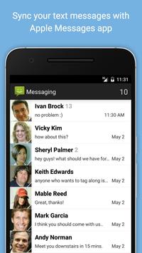 • Only app on the Play Store that integrates SMS, MMS and Group Messaging with Apple Messages app.