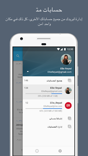 سهولة التنقل بين الإعدادات - صمم هذا التطبيق بتصميم جميل وسهل يركز فقط على الأهم وهو البريد الإلكتروني.