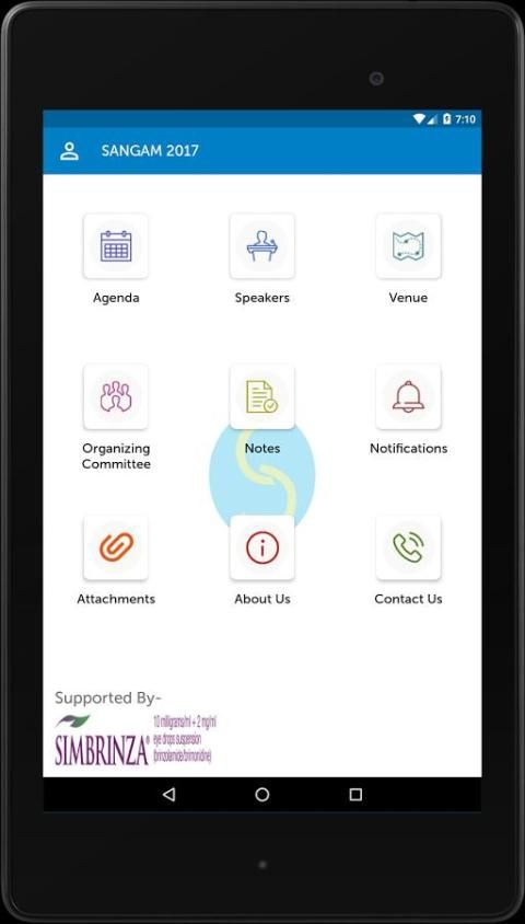 يقدم التطبيق مؤتمر سانجام 2017 باعتباره الكتيبات الإلكترونية التي تمنحك تفاصيل الجدول الزمني ومكبرات الصوت. يمكن للمندوبين مسجل تدوين الملاحظات والتعليق عليها وتقيم جلسات فردية.
