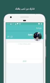 تمكن منصة صراحة المستخدمين من الحصول على نقد بناء وصريح من أفراد عائلاتهم وأصدقائهم وزملائهم، وتوفر المنصة بيئة آمنة للمستخدمين لمشاركة نقدهم بخصوصية من غير الصعوبات والضغوطات التي يتعرض لها الناس عند اعطائهم نقد بصورة مباشرة وجهاً لوجه.