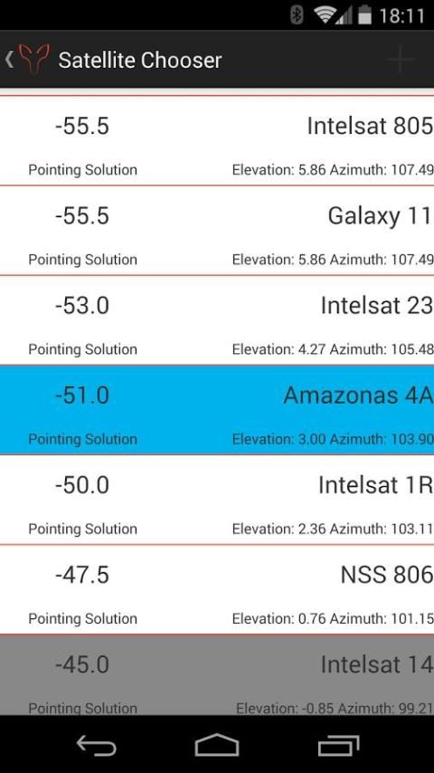 الأقمار الصناعية صحن المؤشر يأتي مع قائمة للتخصيص المستخدم من أكثر من 230 الأقمار الصناعية المتزامنة مع الأرض ويحتوي على شاشة بسيطة جدا وبديهية لإرشادك إلى حيث القمر الصناعي هو في السماء.