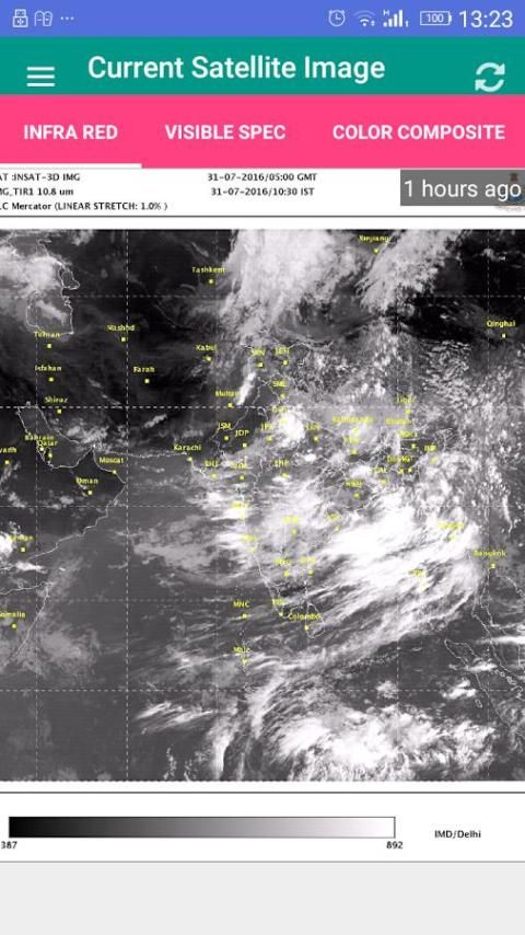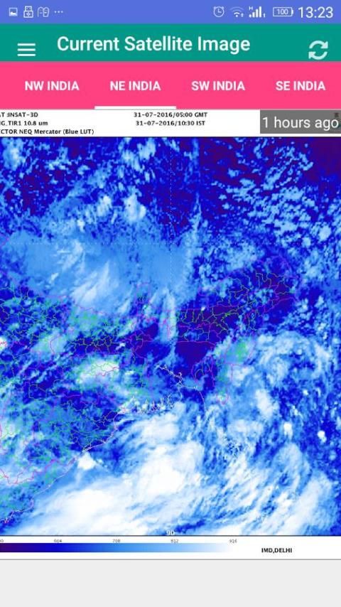 هذا التطبيق سوف توفر أيضا شمال شرق الهند وشمال غرب الهند، وجنوب غرب الهند وجنوب شرق صور الأقمار الصناعية الهند مع تفاصيل تصل حدود الدوائر. يمكنك إلقاء نظرة على الطقس الحالي وكذلك التنبؤ عن الطقس الخاص في الفترة المقبلة.