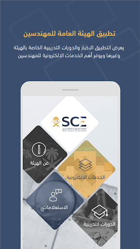 تهدف الهيئة السعودية للمهندسين إلى النهوض بمهنة الهندسة وكل ما من شأنه تطوير ورفع مستوى هذه المهنة والعاملين فيها. ويهدف التطبيق إلى عرض معلومات الهيئة العامة من أخبار وإحصاءات وعناوين إدارات وفروع الهيئة. كما يتضمن مواقع التواصل الاجتماعى الخاصة بالهيئة وكذلك الخدمات الإلكترونية التي تقدمها الهيئة للمهندسين والفنيين كنظام الاعتماد المهني والتدريب ونظام المجالس الهندسية والفروع. كما يوفر التطبيق خاصية الدعم أو نظام التذاكر الإلكترونية.