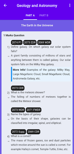 يحتوي دليل Science Ko على كل أسئلة وأجوبة مادة العلوم للصف العاشر. يحتوي على كل الأسئلة التي جاءت في SEE من عام 2069 قبل الميلاد. حتى عام 2075 قبل الميلاد وبعض الأسئلة الإضافية.