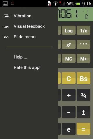 هذه الآلة الحاسبة ملامح المشهد وصورة التوجهات في نظرة ارضاء والمظهر. بفضل محركها تخطيط الذكية واجهة المستخدم يبقى دائما واضحة بشكل مستقل من أحجام الشاشة المختلفة. الاستخدام هي مشابهة جدا بالمقارنة مع الأجهزة الحاسبة المعتادة. إذا كان موجودا لا تتردد في استخدام لوحة المفاتيح الفعلية. يمكن ان يكون مثبت ردود الفعل اللمسية والبصرية في القائمة. آلة حاسبة يوفر الميزات والوظائف التالية: