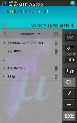 ♦ You can use the calculated values repeatedly by just one-touch.