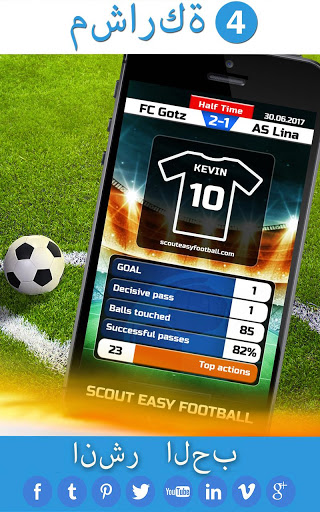 Scout Easy Football هي تطبيق للهاتف المتنقل يسمح لك بالتقاط حركات اللاعبين أثناء المباراة في الوقت الفعلي. في فترة ما بين الشوطين وفي نهاية المباراة، سوف تتمكن من الحصول على إحصائيات كاملة وموضوعية للاعب الذي قم بمتابعته