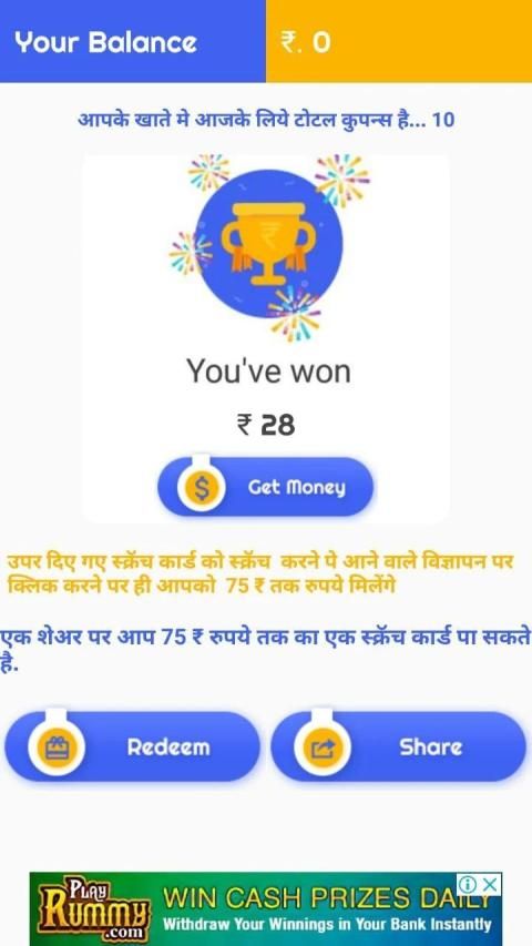 Daily Earn Up to 500 Rs...Daily Get 10 Scratch Card