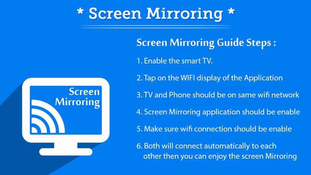 Screen Mirroring: Connect Mobile to TV App will assist you to scan and mirror your android phone or tab's screen on smart TV/Display (mira cast enabled) or Wireless dongles or
