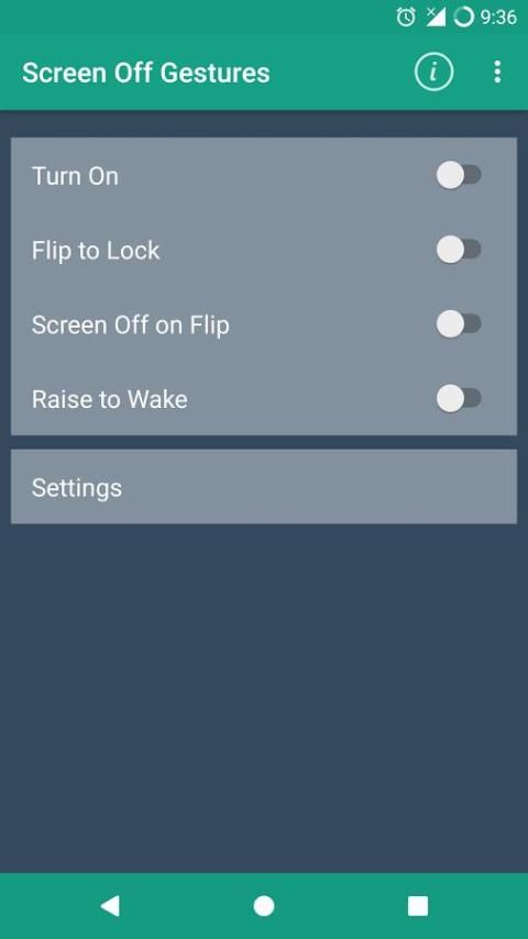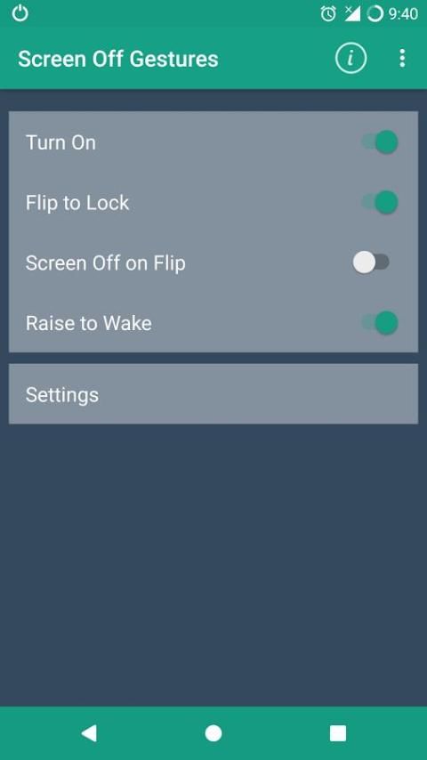 إذا كنت لا تريد لقفل الشاشة ولكن أن تتحول مجرد أنها سوداء يمكنك استخدام الشاشة تشغيل الوضع، فإنه يتحول الشاشة سوداء ويقلل من سطوع إلى الحد الأدنى. وفي هذا الوضع يمكنك استخدام الإيماءات الشاشة للسيطرة على هاتفك. النقر المزدوج على الشاشة السوداء لتحويل هاتفك إلى العرض العادي. هناك أربعة فتات المزيد من قذف تصل، قذف الحق، قذف أسفل، يسار قذف التي يمكنك تعيين أن الإجراءات في الإعدادات.
