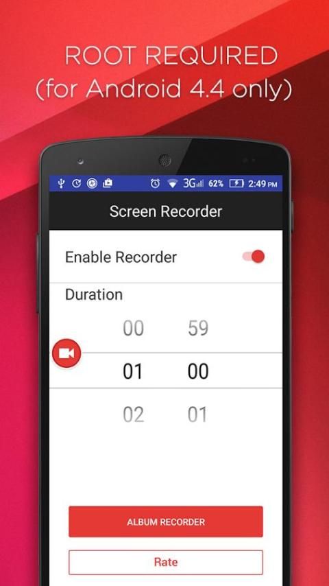 الجذر لا required.If جهاز يعمل بنظام تشغيل Android 4.4، تحتاج إلى قضاء لاستخدام شاشة تسجيل ماستر.