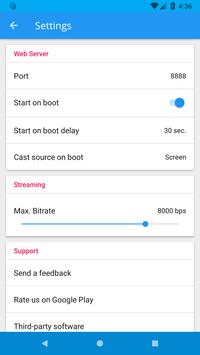 Cast Android screen or camera to browser in other device. This can be another android device, mac or pc.