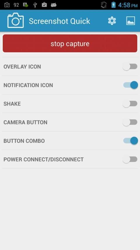 Different ways to trigger screenshot can be chosen