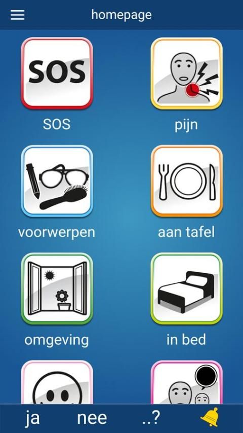meer dan 130 iconen, elk geassocieerd met een naam en opgenomen zinnen (zowel vrouwelijk als mannelijk stemmen mogelijk)