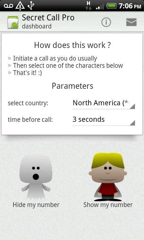 "نداء السري" يسمح لك لبدء المكالمات سرا، وهذا يعني إخفاء هوية المتصل بك. هذا التطبيق فريد من نوعه يتيح لك خيار لإخفاء أو إظهار الرقم الخاص بك كلما قمت بالاتصال بشخص.