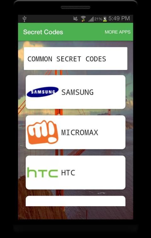 سامسونج، إل جي، لينوفو، مايكروماكس، سوني، اتش تي سي والشائعة رموز لجميع أجهزة الروبوت.
