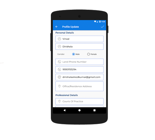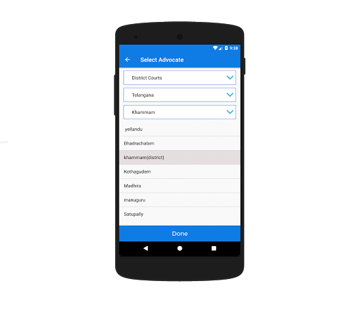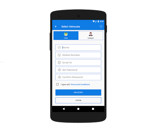 Lawyers can register with their mobile number and with unique bar council number assigned to them and can update his profile. Users can search for lawyer based on three filters.They are 1. Court Name 2. Advocate (Lawyer) category 3. Layer seniority.