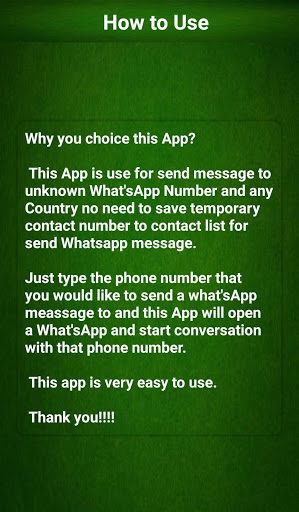 الآن لا تقلق، لقد جلبنا الحل، وسيساعدك هذا التطبيق على إرسال رسالة إلىأي مستخدم ما هو التطبيق دون حفظ هاتفهم المحمول في قائمة جهات الاتصال.