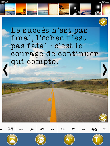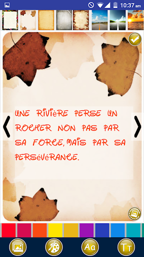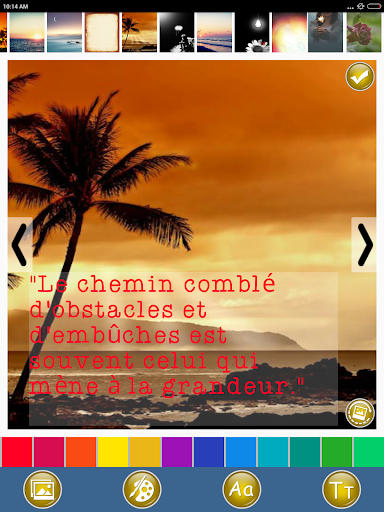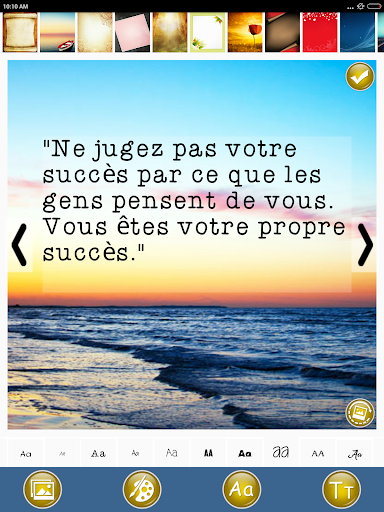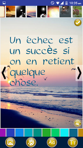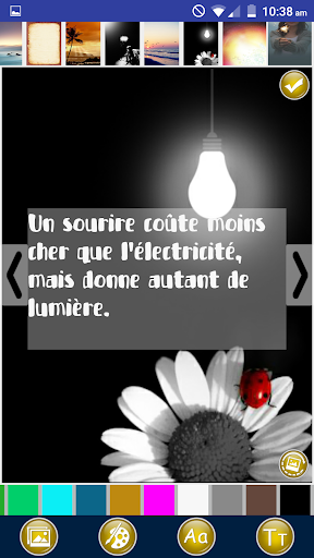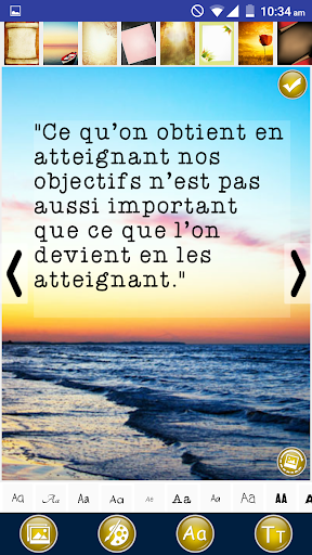 تطبيق IT هو أفكار إيجابية في اقتباسات الفكر والديكورات التي ستبني قوتك الداخلية وتساعدك على النمو عقليا وروحيا حتى تتمكن من العيش حياة إيجابية وسعيدة. يتيح لك هذا التطبيق تصميم ومشاركة أفكار ملهمة إيجابية تشير إلى الأمثال والأقوال الفرنسية. تطبيق مكتبة متكامل صور جميلة يمكنك استخدامه كخلفية موضوع من الصور أو يمكنك أيضا مشاركة عروض الأسعار كنص فقط. العمل الإيجابي يبقى استئهاد مجموعة مضحكة اقتباسات ملهمة وحكيمة على الأشياء الإيجابية وأكون إيجابيا من قبل المؤلفين المشهورين.