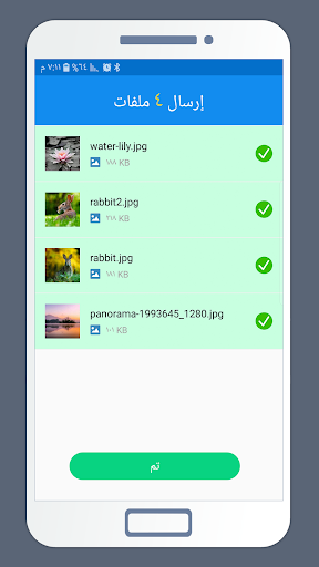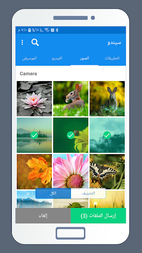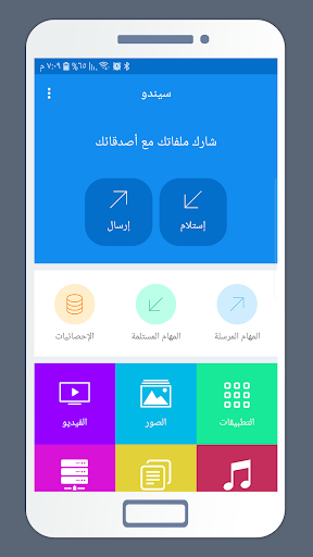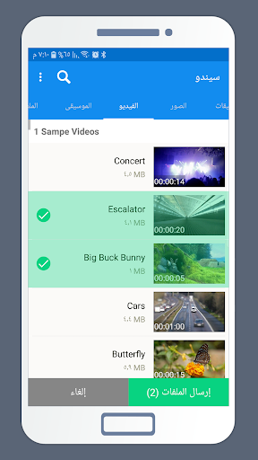 - يمكنك مشاركة جميع انواع الملفات فيمكنك اختيار تطبيقات أو صور أو مقاطع فيديو أو موسيقى أو غيرها وارسالها بعملية ارسال واحدة.