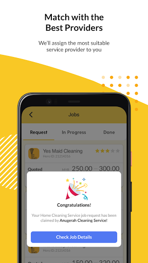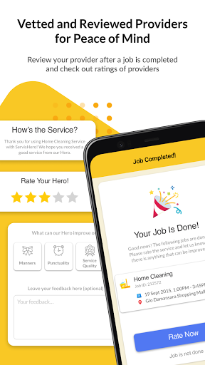 3. خدمة العملاء - معدل استجابة 100٪ لدينا يضمن الرد على جميع طلبات الدعم بسرعة وحل بكفاءة في 4. الراحة - توفير ساعات من خلال إيجاد المهنيين على الفور، وإدارة وظائفك في مكان واحد ومراجعة ومعدل المهنيين في التطبيق بعد الانتهاء من الوظيفة