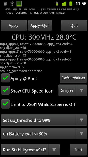 أي تعيين UP_Threshold إلى 99 على BATT = 40٪ وعلى BATS = 20٪ من خيارات VSEL2 -More Onthefly Options عبر Notify Menue