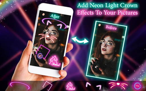 هذا محرر صور النيون هذا - تأثيرات ضوء النيون لديها بعض التأثيرات الفريدة على الصور أي واحد يمكن أن يستخدم هذا مثل الفتيات لطيف الفتيات يمكنه استخدام هذا مع مئات من تاج زهرة لدينا، وأضواء النيون مع تاج نيون مخصص. هذا محرر الصور النيون Shinning سهل الاستخدام وسيمكن للمستخدم ضبط ملصقات النيون الجديدة. فقط بسبب استخدامها بسيطة وسهلة الاستخدام. المستخدم مثل واستخدامه باهتمام.