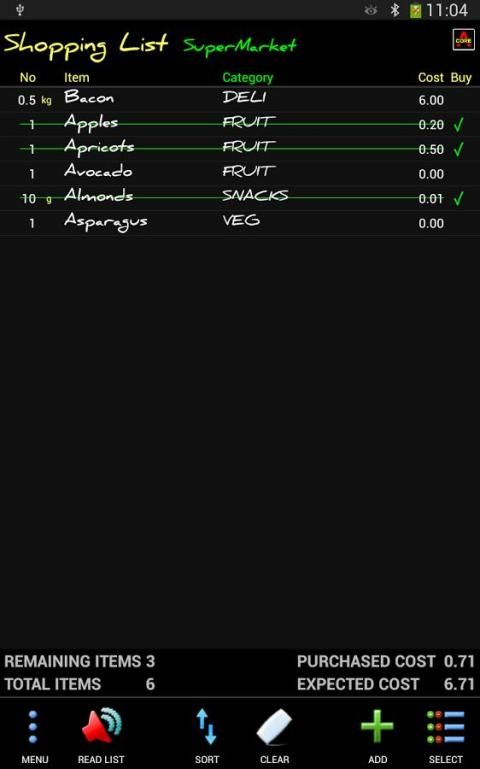 -عرض قائمة التسوق أبجديا أو فرزها حسب الفئة، أو تكلفة البنود المتبقية.