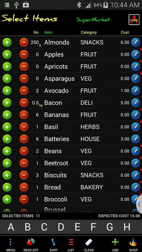 Shopping List Maker READs, EMAILs, SORTs and has a quick select toolbar. Personalize as required.